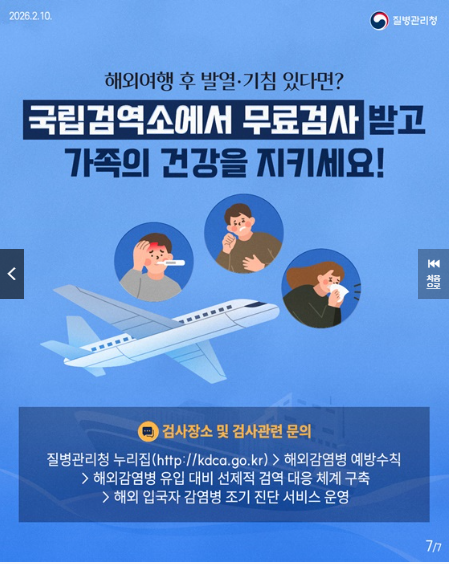 해외여행 후 발열 기침 있다면 무료검사 받으세요