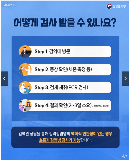 2026년 2월 10일부터 전국 13개 국립검역소에서 무료 검사 서비스를 시행합니다.