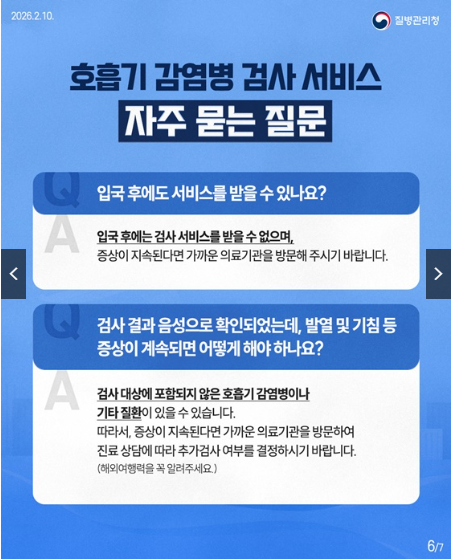 이제 공항과 항만에서 무료로 호흡기 감염병 검사를 받을 수 있습니다.